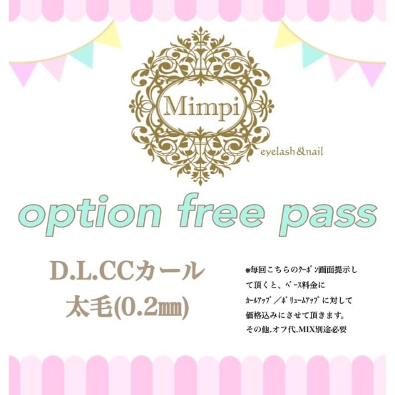毎回こちらのクーポン画面を提示していただくと、ベース料金に「カールアップ/ボリュームアップ」に対して価格込みにさせて頂きます。(その他、オフ代、MIX別途必要)